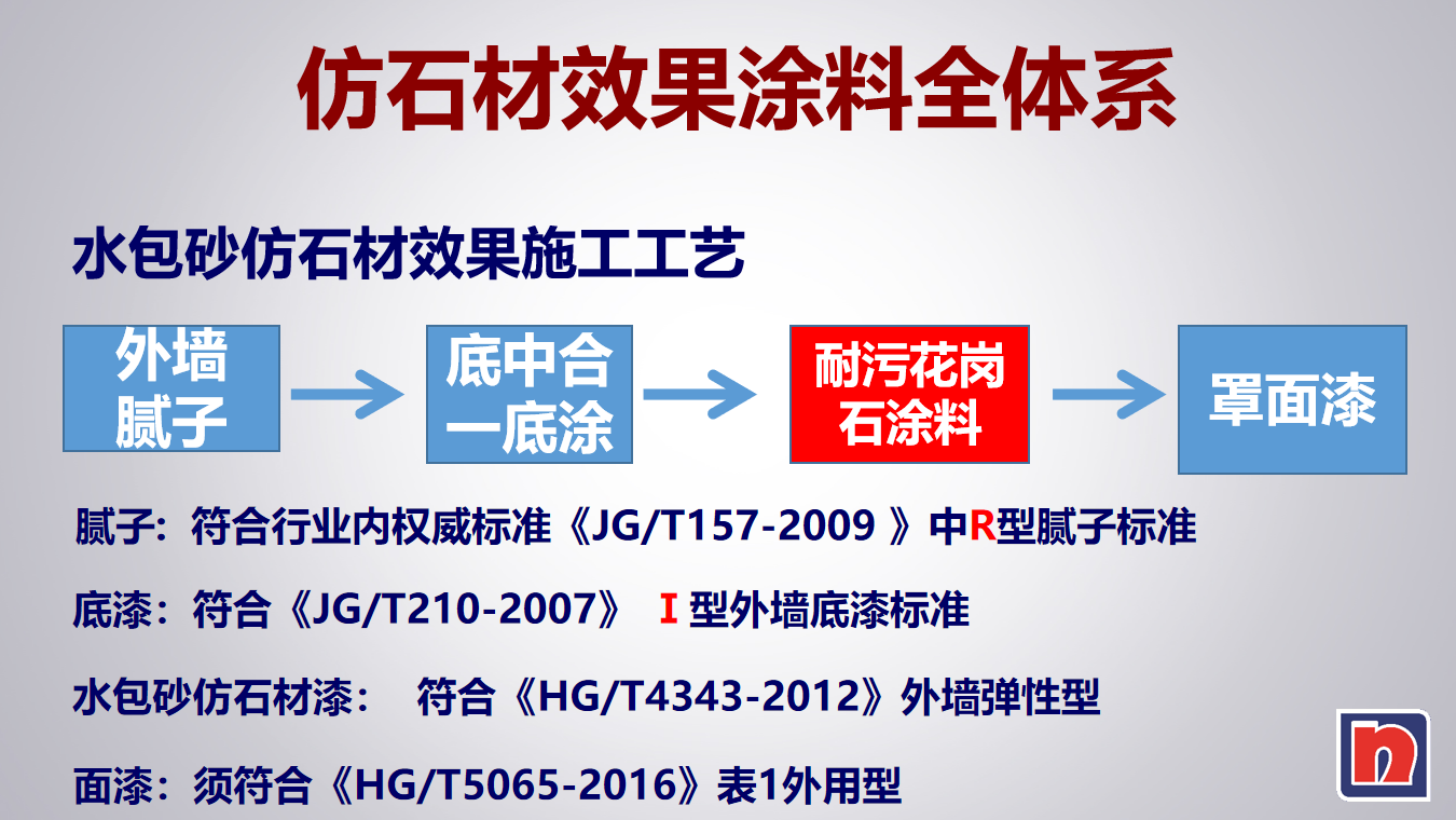為了保證面漆的完整性效果,采用外墻專用找平膩?zhàn)樱街?、?qiáng)度高、防裂縫、起泡等現(xiàn)象。